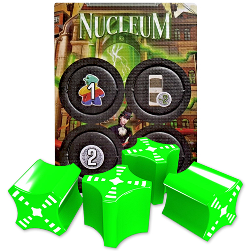Changes in setup: Exchange wooden Nucleum markers with acrylic ones. Randomly assign 4 Nucleum Bonus tiles to cities with Nucleum power plants (covering the bonuses printed on the map). During setup when you assign one of the Nucleums, flip the corresponding Nucleum Bonus tile.