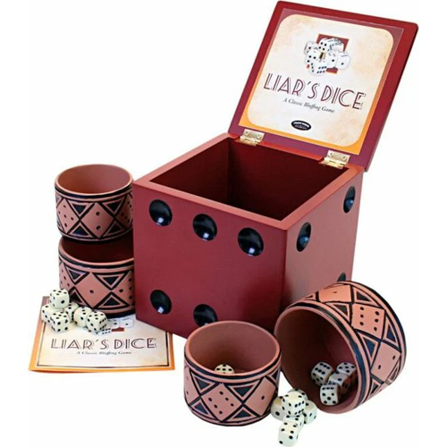 Inspired by an Indian dice bluffing game, Liar's Dice from Front Porch Classics is a fun and easy way to enjoy countless hours with friends and family. Played by pirates and sailors for centuries, Liar's Dice has entertained generations of people and will surely entertain many generations to come.