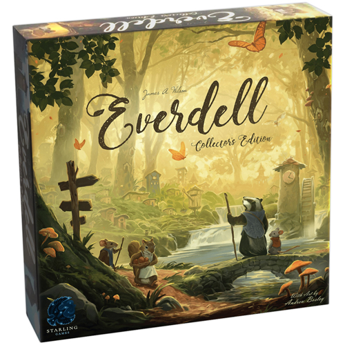 | The Collector's Edition of Everdell includes everything in the standard edition, plus the 10 card Legends expansion, 15 Extra! Extra! cards, 30 metal tokens, and an upgraded 8-sided die. This is all contained in a UV spot-coated box and a Gallery slipcase. |