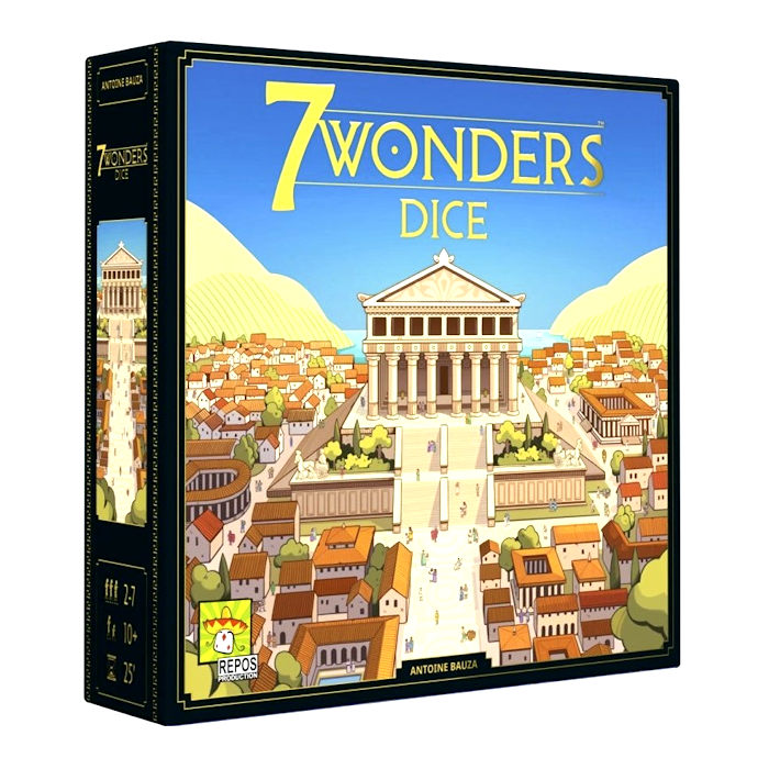 Guide one of the seven largest cities of antiquity to prosperity in 7 Wonders Dice. During the game, you will construct a wonder that defies time, make scientific advances, develop commerce, manage your resources, and handle your gold reserve prudently — all while keeping an eye on neighboring cities since ignoring them has a heavy price!