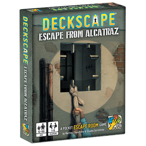 Deckscape: Escape from Alcatraz is the seventh title in a series of co-operative games inspired by real escape rooms in which a group of people is "trapped" inside a room full of puzzles and odd items. The goal of the game is to solve puzzles, understand the plot of the story, and make intelligent use of the items provided in order to exit from the room as quickly as possible.