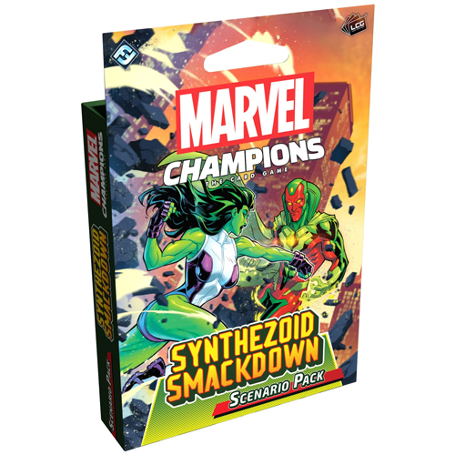 Introducing Synthezoid Smackdown, the latest scenario pack for Marvel Champions: The Card Game! This pack includes two brand-new, customizable scenarios featuring She-Hulk and Vision, two heroic leaders clashing over their conflicting ideals. This extra-large, 90-card scenario pack comes with eight modular encounter sets (four for registration, four for resistance) that can be mixed and matched with those from the Civil War expansion for further customizing options. Also included are rules and cards for an optional competitive mode in which players team up with their own leader and race to be the first to defeat the opposing team’s leader.